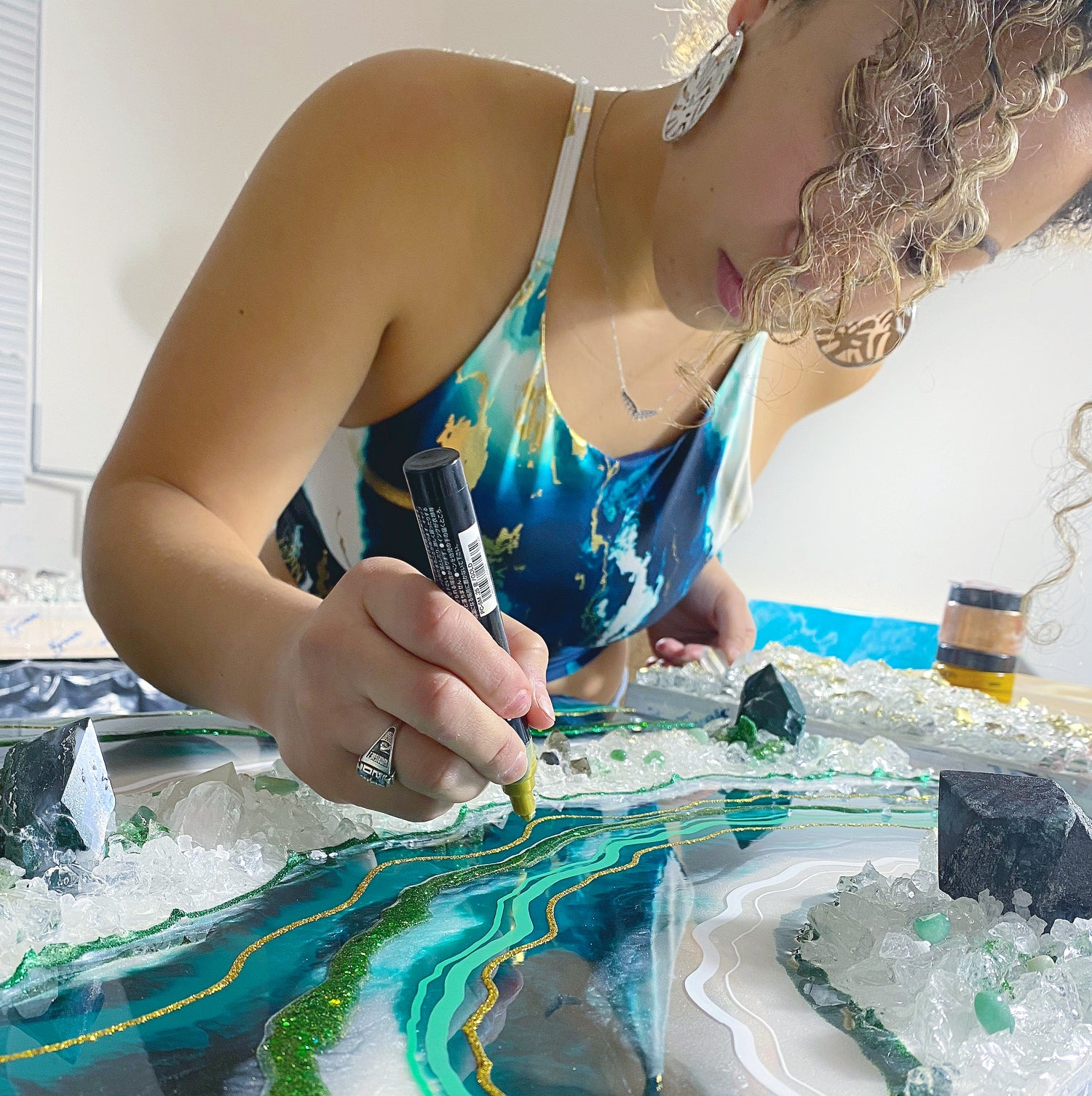 Oh, the beauty of a geode rock! Have you had the chance to see one? They are truly breathtaking! The intricate lines, the graceful flow, the perfect symmetry, and the abstract shapes all come together beautifully. Crafting art pieces that emulate the lines, colors, and fluidity of a geode is undeniably a remarkable work of art!